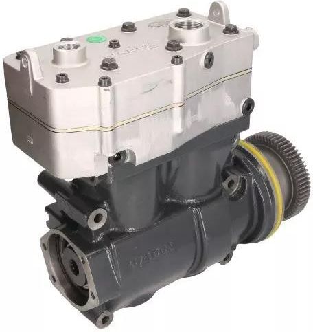 Kompresor sprężonego powietrza, liczba cylindrów: 2, sposób chłodzenia: ciecz chłodząca, z kołem napędowym (nowy) pasuje do: daf xf 105 mx300/mx340/mx375.