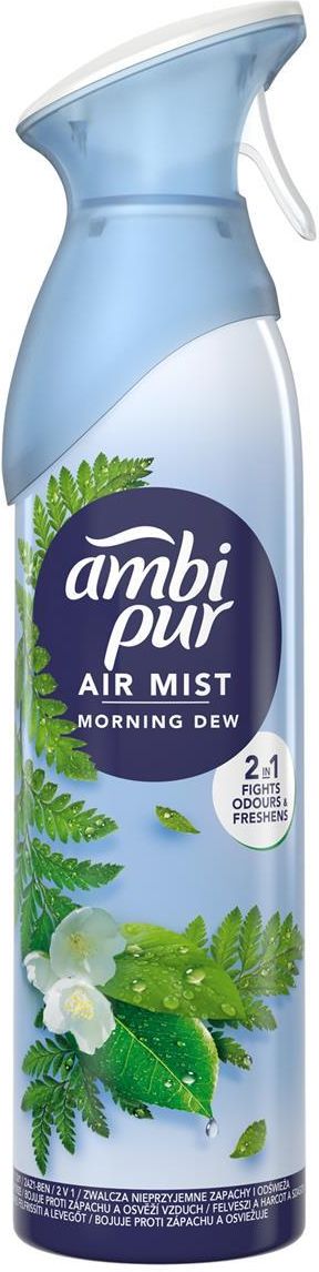 Odświeżacz powietrza Ambi Pur z technologią OdourClear oczyszcza powietrze z brzydkich zapachów, pozostawiając delikatną i świeżą woń. Zapach Morning Dew jest inspirowany świeżością spaceru o poranku. Aerozole Ambi Pur są niepalne i zawierają w 100% naturalny gaz nośny. Dlatego jest to idealne rozwiązanie do każdego pomieszczenia w Twoim domu. Sięgnij po pełną gamę produktów Ambi Pur z wyjątkową technologią OdourClear, takich jak odświeżacze do tkanin lub do samochodu. Wypróbuj także elektryczne odświeżacze powietrza Ambi Pur 3Volution, które usuwają brzydkie zapachy nieprzerwanie przez nawet 90 dni. Ambi Pur Morning Dew Odświeżacz powietrza w sprayu 185ml
