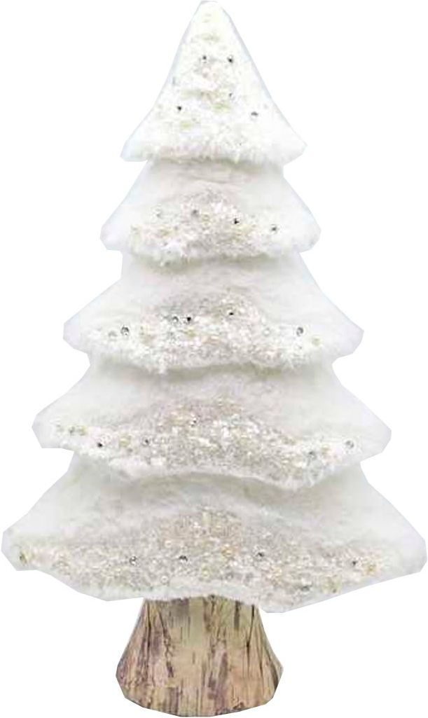 Styropianowa figurka w kształcie choinki z białym futerkiem, dekoracja na Boże Narodzenie. Wysokość: 50 cm Szerokość: 33 cm Opakowanie: 1 szt.