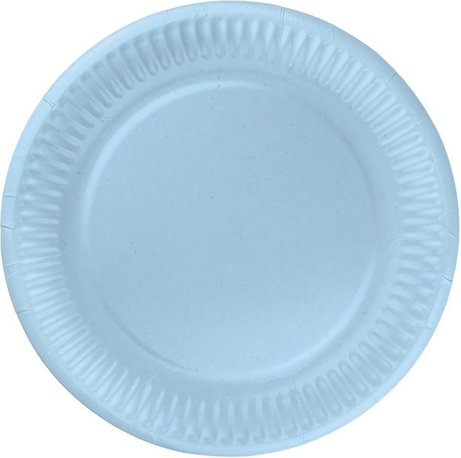 Talerzyki papierowe w kolorze niebieskim. Średnica: 18 cm. Opakowanie: 6 szt.