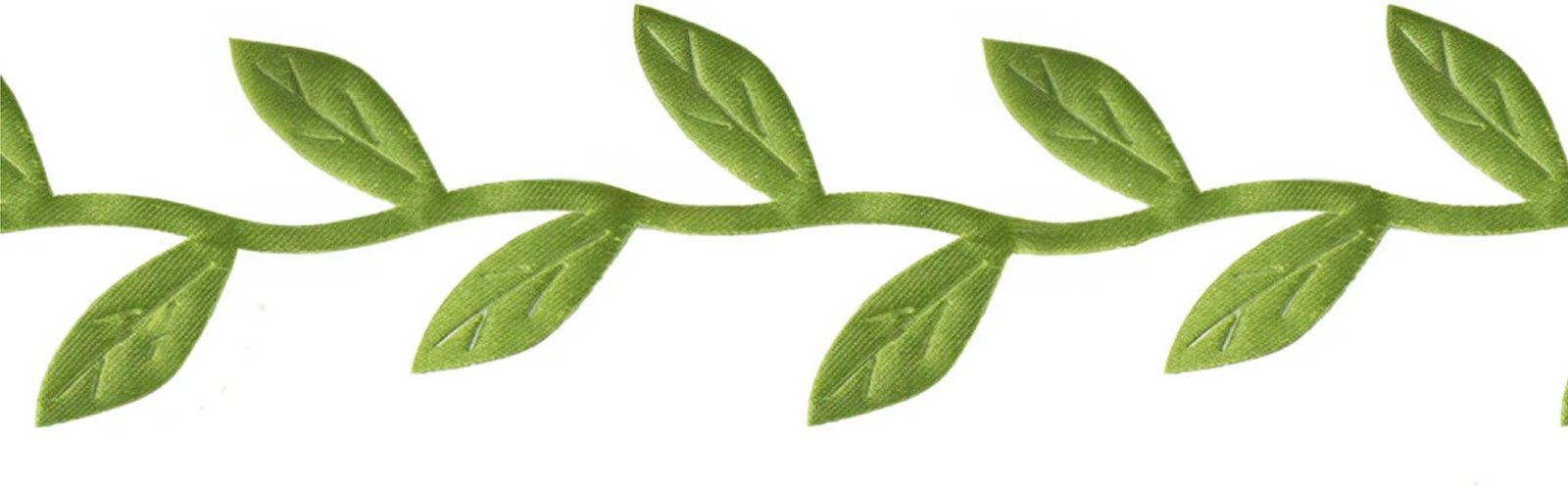 Girlanda z zielonymi listkami, idealna dekoracja np. na stół weselny lub komunijny. Długość: 300 cm. Opakowanie: 1 szt.