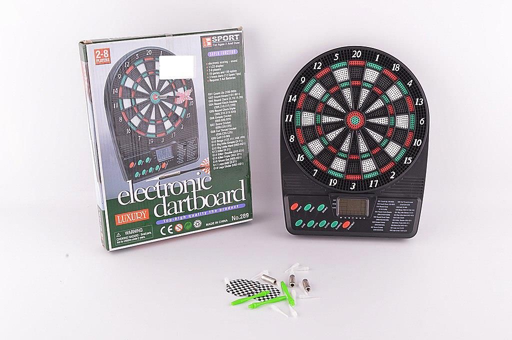 TARCZA ELEKTRONICZNA NA RZUTKI DART Elektroniczna gra dart - rzutki, jest świetną zabawą zarówno dla dzieci, jak i dorosłych. Teraz możesz cieszyć się tą wspaniała grą we własnym domu. Tarcza posiada 18 wbudowanych gier (159 trybów), dzięki czemu przez długi czas będziesz cieszyć się grą i odkrywać nowe możliwości. Gra posiada wbudowany głośnik, przez który emitowane są dźwięki komunikatów. Oprogramowanie pozwala na grę równoczesną grę 8 osób. Wyświetlacz zamontowany na tablicy informuje o wynikach. Na obwodzie tarczy, zamontowano specjalny "łapacz" czyli pole, które wyłapuje niecelne rzuty. Tarczę można zarówno powiesić dzięki otworowi na tylnej obudowie, jak postawić na stole, dzięki dołączonej demontowanej stopce. SPECYFIKACJA ilość graczy: 2-8 osób wiek: 3+ ilość gier: 18 ilość trybów: 159 ekran: LCD sygnalizacja: głosowa i dźwiękowa zasilanie: 3 baterie typu AA (brak w zestawie) wymiary tarczy (wys/szer/dł): 26x18x3cm długość rzutki: 12,5cm waga: ~560g W ZESTAWIE tarcza do gry rzutki - 3 sztuki zapasowe końcówki do rzutek - 9 sztuk Kod: ZB-DART289