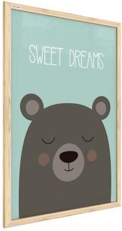 Obraz pastelowy miś “sweet dreams” 60x40cm w ramie drewnianej naturalnej Powierzchnia – kolorowa grafika nadrukowana na powierzchnię magnetyczną. Całość konstrukcji zamknięta jest w ramie drewnianej. Grafika - obraz przedstawia śpiącego misia na pastelowym, niebieskim tle z napisem “sweet dreams” …
