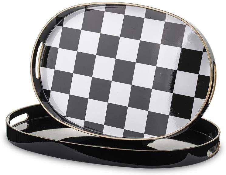 Taca. Materiał: tworzywo sztuczne. Rozmiar: 3,5x39,5x27 3,5x44,5x30,5. Kolor: czarny, biały, złoty. Tace i podstawki pod talerz to dekoracje, które do...