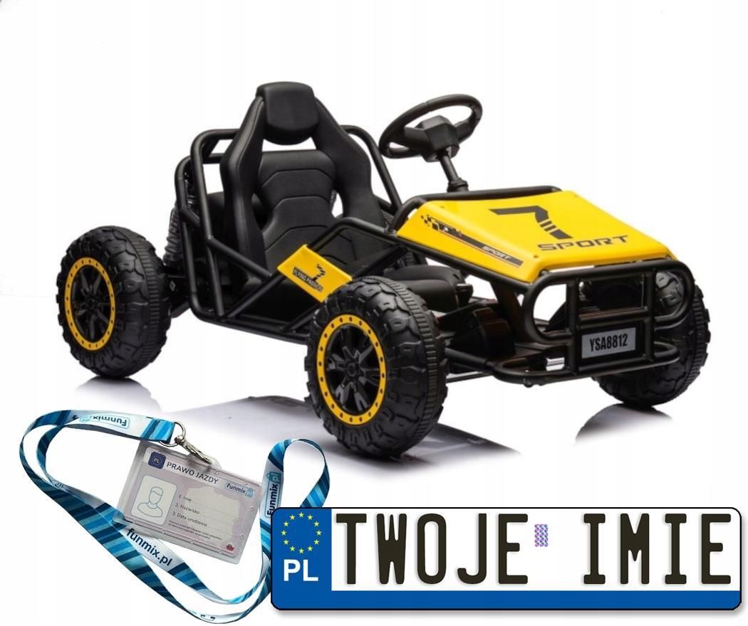 Auto Na Akumulator Buggy A8812 Pomarańczowe 24V Specyfikacja Model: A8812 Kolor: Pomarańczowy Silnik: 2x100W Akumulator: 24V14Ah Wymiary Pojazdu: 123cm x 76 cm x 63 cm Prędkość: 5-7km/h Masa Własna: 27 kg Max. Obciążenie: 60kg Czas Ładowania: 8 godzin Czas Działania: do 1 godziny Pasy Bezpieczeństwa: + Otwierane Drzwi: ✕ Kluczyki: X Fotele: Ekoskóra Koła: Miękkie EVA Zdalne Sterowanie: ✕ Światła: - Kod producenta: 5905991013532 Tablice rejestracyjne do pojazdów dla dzieci z imieniem dziecka + prawo jazdy + smycz i identyfikator na prawo jazdy Tablice dla większej trwałości drukowane są na papierze fotograficznym, a z tyłu podklejane mocną taśmą dwustronną. Są uniwersalnej wielkości pasującej do większości pojazdów dla dzieci - ok 13,7 cm x 3,2 cm. Zestaw oczywiście zawiera dwie sztuki. Prawo jazdy jest wielkości oryginalnego ok 85,6 mm x 54 mm z miejscem na wklejenie zdjęcia i podanie danych dziecka wraz z posiadanymi uprawnieniami. Aby nie była to chwilowa zabawka, która zaraz się zniszczy lub zginie w zestawie dodajemy identyfikator do którego montujemy prawo jazdy, a następnie identyfikator przypinamy do smyczki, którą również jest w zestawie. Taki komplet dziecko może nosić na szyi. Smycz jest wysokiej jakości z dwustronnym nadrukiem - nie jak w przypadku tańszych gdzie druga strona jest w całości biała co wygląda nieestetycznie i ulega szybkiemu zabrudzeniu. Wytyczne użytkowania pojazdu dla dzieci na akumulator Czas ładowania motorka wynosi 8 do 10 godzin. Prawidłowo użytkowany akumulator nie powinien być przetrzymywany po rozładowaniu, dłużej niż dobę, ponieważ może znacznie się skrócić jego żywotność. Przed pierwszym uruchomieniem, należy zapoznać się z instrukcją.