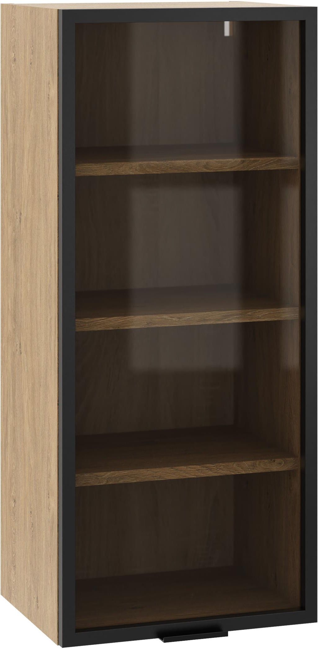 BARI PLUS WITRYNA WISZĄCA GV-AL-40-H92 DĄB KAMIENNY to witryna wisząca do kuchni, której wymiary wynoszą 40 cm szerokości, 92 cm wysokości oraz 32 cm głębokości. Model wyposażony w cztery półki oraz korpus z płyty laminowanej, doskonale imituje naturalną strukturę dębu kamiennego. Zaprezentowane na meblach kuchennych drewno naturalne wniesie do wnętrza przytulność i wizualne ocieplenie. Aluminiowe uchwyty listwowe w czarnym kolorze sprawiają, że produkt doskonale sprawdzi się w roli mebli kuchennych w stylu loft, industrialnym i nowoczesnym. Kolekcja mebli Komfort wyposażona została w okucia Blum oraz system cichego domknięcia.