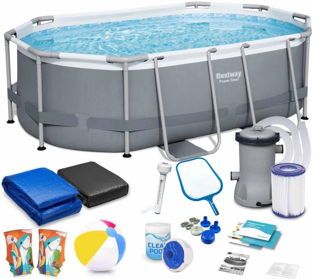Basen ogrodowy stelażowy 305 x 200 x 84 cm - idealny dodatek do Twojego ogrodu Poszukujesz basenu, który pozwoli Ci na orzeźwienie i relaks w gorące dni? Nie szukaj dalej! Prezentujemy Ci Basen ogrodowy stelażowy o wymiarach 305 x 200 x 84 cm marki Bestway. Ten solidnie wykonany basen to doskonały wybór dla Ciebie i Twojej rodziny. Niezawodna jakość Bestway Bestway to renomowany producent wysokiej jakości basenów ogrodowych. Ich produkty są znane z trwałości, niezawodności oraz innowacyjnych rozwiązań. Basen stelażowy o wymiarach 305 x 200 x 84 cm spełnia najwyższe standardy jakościowe, gwarantując nie tylko radość użytkowania, ale także długotrwałą satysfakcję. Przekonaj się o wszechstronności i funkcjonalności tego basenu Ten imponujący basen posiada wiele zalet, które sprawią, że będzie on idealnym miejscem odpoczynku dla Ciebie i Twoich bliskich. Wykonany jest z trójwarstwowego PVC Tritech - materiału odpornego na działanie czynników atmosferycznych oraz uszkodzenia mechaniczne. Dzięki temu bazenie możesz cieszyć się przez wiele sezonów bez obawy o jego stan techniczny. Basen stelażowy o owalnym kształcie oraz wymiarach 305 x 200 cm zapewnia dużą przestrzeń do pływania i zabaw w wodzie. Jego pojemność wynosi aż 3668 litrów, co czyni go idealnym dla rodzin z dziećmi czy grupy przyjaciół. Dzięki solidnemu stelażowi basen jest stabilny i bezpieczny - możesz cieszyć się pełna swobodą ruchu bez obawy o przypadkowe wywrócenie się konstrukcji. Montaż i demontaż w prosty sposób Bestway zadbało również o łatwość montażu i demontażu tego basenu. Specjalne uniwersalne zawory sprawiają, że proces napełniania oraz opróżniania nie zajmuje wiele czasu ani wysiłku. Basen posiada także zestaw akcesoriów, który ułatwi Ci jego obsługę i utrzymanie w czystości. Wspólna zabawa przy basenie to doskonała forma spędzania czasu wolnego - zarówno dla dorosłych jak i dzieci. Nie musisz już dłużej marzyć o własnym basenie ogrodowym! Wybierz Basen ogrodowy stelażowy o wymiarach 305 x 200 x 84 cm marki Bestway i ciesz się letnią frajdą w komfortowym otoczeniu Twojego ogrodu. Specyfikacja Producent: Bestway Rozmiar: ~ 305 cm Długość (cm): 305 Szerokość (cm): 200 Wysokość (cm): 32.50 Wysokość (cm): 84 Pojemność (l): 3668 Rodzaj basenu (2): stelażowy Kształt basenu (2): owalny Materiał zbiornika: 3-warstwowe PVC Tritech Zalecane wypełnienie (%): 90 Przewidywany czas montażu (min): 30 Waga basenu (kg): 31,1 Filtr pompy: I (#58093) Wydajność pompy (l/godz): 1249 Moc pompy (W): 16 Zasilanie pompy (V): 220-240 Waga pompy (kg): 2,1 Symbol producenta : 5614A