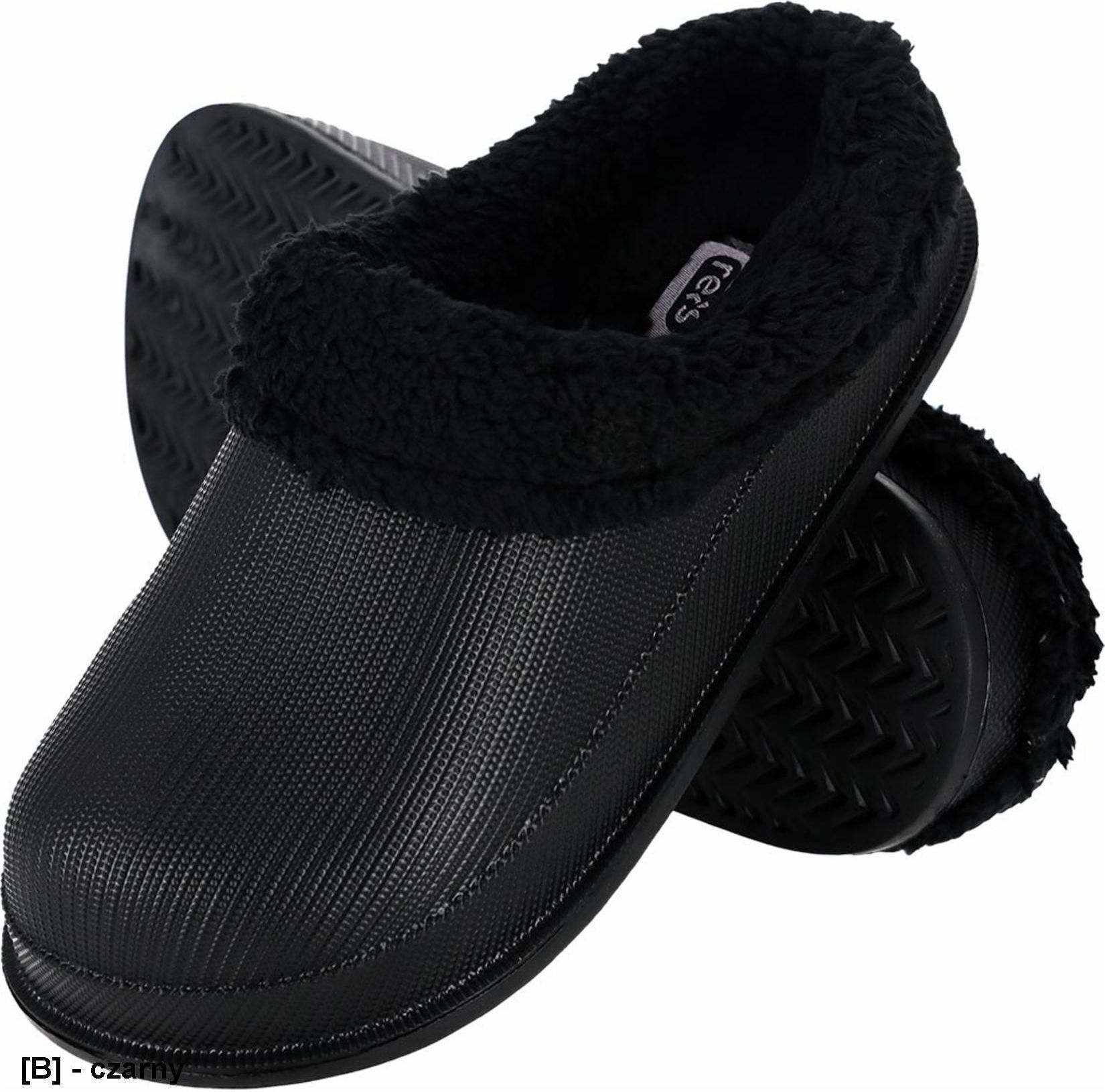 BCFLUFF - Klapki damskie FLUFF tworzywo EVA ocieplane futerkiem wsuwane wyprofilowane - czarny Dobczyce