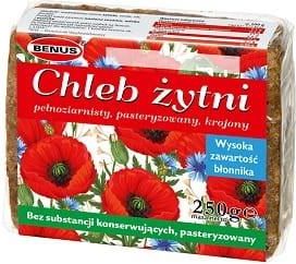 Benus Chleb żytni pełnoziarnisty pasteryzowany krojony 250 g Możliwość zakupu w opakowaniu zbiorczym: 11 sztuk. Pełnoziarnisty chleb żytni Benus to gotowe pieczywo, o prostym, naturalnym składzie i bogatym smaku i zapachu. Pełnoziarnisty chleb żytni Benus nie zawiera konserwantów. To świetna baza …