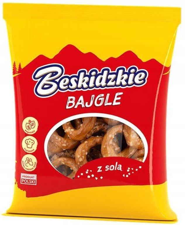 Beskidzkie Bajgle z solą 200g ❤️ Inny ❤️ __________________________________________________________________ ✔️ Beskidzkie Bajgle z solą to propozycja dla miłośników wyrazistych smaków. Ich chrupiąca skorupka w połączeniu z lekką nutą soli to wspaniała propozycja na mały głód. Branża: 30 EAN: …