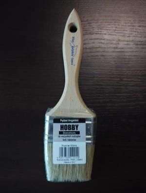 BLUE DOLPHIN pędzel angielski Hobby | szerokość 63 mm Pędzel angielski Hobby Blue Dolphin o szerokości 63 mm to trwałe i wygodne narzędzie do prostych prac malarskich, wykonane z naturalnej szczeciny, z bukowym szlifowanym trzonkiem oraz ocynkowaną skuwką. Najważniejsze zalety naturalna szczecina …