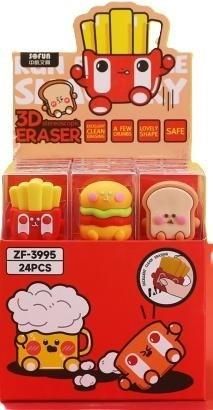 Opakowania zbiorcze zawiera 24szt. Gumka do ścierania o ciekawym kształcie. Zapewnia dokładne ścieranie. Kilka uroczych wzorów. Opakowanie blister.