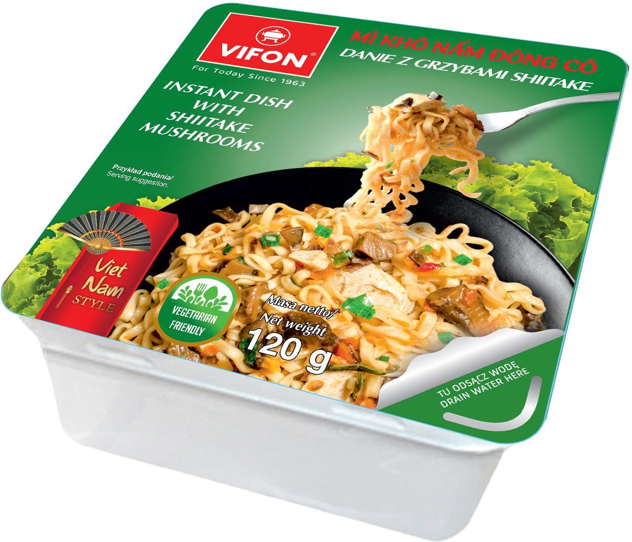 Vifon Danie z grzybami Shitake tacka 120 g Możliwość zakupu w opakowaniu zbiorczym: 12 sztuk. Nie masz czasu na gotowanie posiłku? Nasza propozycja to Danie z grzybami Shitake Vifon, łatwe i szybkie do zrobienia. Wystarczy kilka minut – Danie z grzybami Shitake zjesz wygodnie prosto z tacki. …