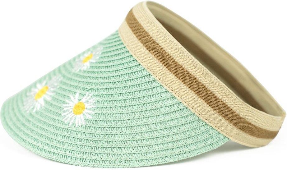 Praktyczny daszek w modnym motywem roślinnym. Podstawą daszka jest obręcz będąca elastyczną opaską pokrytą materiałem. Sam daszek jest miękki i można go zaginać. Ten stylowy dodatek docenią osoby lubiące spędzać lato na powietrzu i w słońcu.