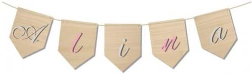 Deku – Girlanda z napisem 5 elementów – 10 cm x 13 cm - 000146 Girlanda z drewnianymi proporczykami na których nakleimy Twoje imię lub dowolnie wybrany wyraz, a nawet zdanie! Proporczyki są drewniane, wykonane z wysokiej jakości sklejki i grubości 3 mm. Girlanda doskonale nadaje się na przyjęcia …