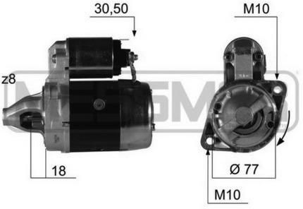 ERA 220382A ERA-MESSMER KIA,MITSUBISHI,HYUNDAI,PROTON Podstawowe informacje: Właściwości Napięcie [V]: 12 Moc znamionowa [kW]: 0,9 Ilość zębów: 8 ID wykonania wtyczki: 30-50 Kierunek obrotów: zgodnie z ruchem wskazówek zegara Ø flanszy [mm]: 77 Liczba otworów do mocowania: 2 Szczelina-ustawienie …