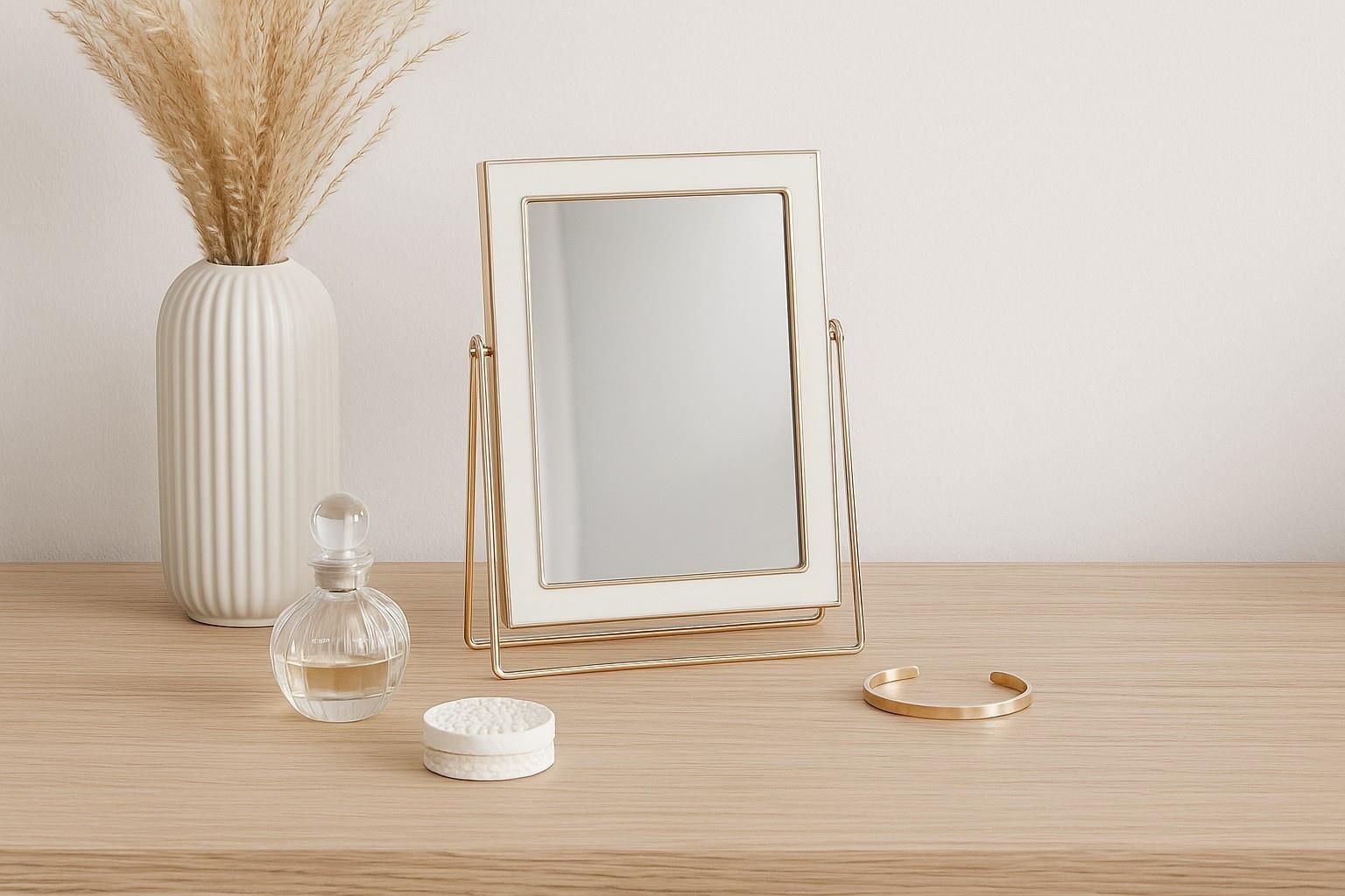 Lusterko stojące EWAX białe ze złotym akcentem – stylowa funkcjonalność w Twoim wnętrzu. Eleganckie lusterko stojące marki EWAX o wymiarach 16,5 × 22 cm to połączenie minimalistycznego designu i praktyczności. Biała rama z subtelnym złotym detalem wprowadza wyrafinowany akcent do każdej przestrzeni. Wykonane z wysokiej jakości tworzywa sztucznego, lusterko jest lekkie, stabilne i idealne zarówno do codziennego użytku, jak i dekoracji. Doskonale sprawdzi się na toaletce, komodzie czy biurku, dodając stylowego charakteru wnętrzu. Zastosowanie: Idealne jako lustro do makijażu w sypialni lub łazience Praktyczny i estetyczny dodatek do biurka lub konsoli Może pełnić rolę elementu dekoracyjnego w aranżacjach salonowych Świetne również do gabinetów kosmetycznych i przestrzeni usługowych Propozycje aranżacji: W stylu nowoczesnym – ustaw na białej lub drewnianej toaletce, obok perfum i świec W aranżacjach industrialnych – na czarnej konsoli z metalowymi dodatkami i surowymi teksturami W stylu boho – w otoczeniu naturalnych tkanin, suszonych traw i rattanowych dodatków Wnętrza glamour – połączenie ze złotą lampką stołową i kryształowymi akcentami Dzięki kompaktowym wymiarom i stylowemu wykończeniu, lusterko EWAX to nie tylko funkcjonalny gadżet, ale również gustowny detal dopełniający aranżację wnętrza. Zdjęcie tytułowe ma charakter poglądowy. Prezentowana aranżacja może zawierać elementy dekoracyjne niewchodzące w skład zestawu. Szczegóły dotyczące zawartości znajdują się w opisie produktu.
