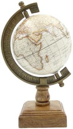 Globus Amundsen na podstawie drewnianej NC2130 Śliczny globus na podstawie drewnianej. Dominanta kolorystyczna - odcienie bieli i brązu. Podstawa drewniana; grzebień metalowy. Nazwy geograficzne w języku angielskim Wspaniały element dekoracyjny Wymiary: wys. 26,5cm, szer. 15cm