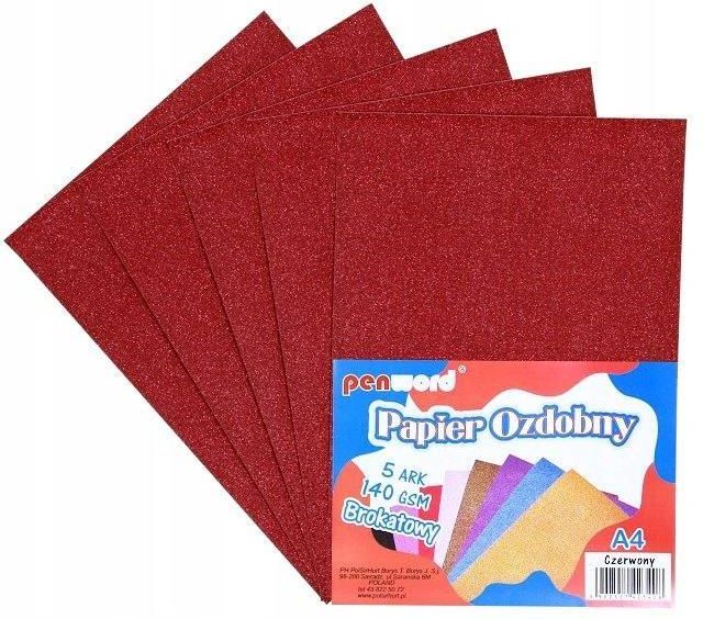 Papier ozdobny A4 brokatowy 140g czerwony 5ark EAN: 5902557423408