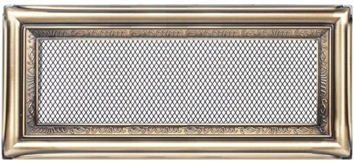 Kratka kominkowa 11x32 cm rustykalna Informacje o produkcie: Kratki o wymiarze 110x320 mm Głębokość: 45 mm Wysokość : 116 mm Szerokość kratki: 316 mm bezpośrednio od producenta ramka kratki odlewana jest ze stopu cynku i aluminium szybki montaż i demontaż Istotny element kratki stanowi ozdobna ramka z delikatnym wzorem, przypominająca ramę obrazu. Kratka kominkowa stanowi estetyczne zakończenie kanałów rozprowadzających ciepłe powietrze z kominka. Jest ona instalowana w ścianie lub w czopuchu obudowy kominkowej za pomocą kieszeni oraz giętkich zapinek. Takie rozwiązanie umożliwia jej szybki montaż i demontaż, np. na potrzeby jej oczyszczenia. Dekoracyjny wygląd kratki sprawia, że doskonale wkomponowuje się we wnętrza tradycyjne i lekko stylizowane. Kratka wyposażona jest w standardzie w kieszeń umożliwiającą jej montaż. Jej istotny element stanowi ozdobna ramka z delikatnym wzorem, przypominająca ramę obrazu. Ramka kratki odlewana jest ze stopu cynku i aluminium, a następnie powlekane galwanicznie uzyskując barwę starego złota. Zabezpieczenie utrwala kolor i chroni kratkę przed działaniem podwyższonej temperatury.