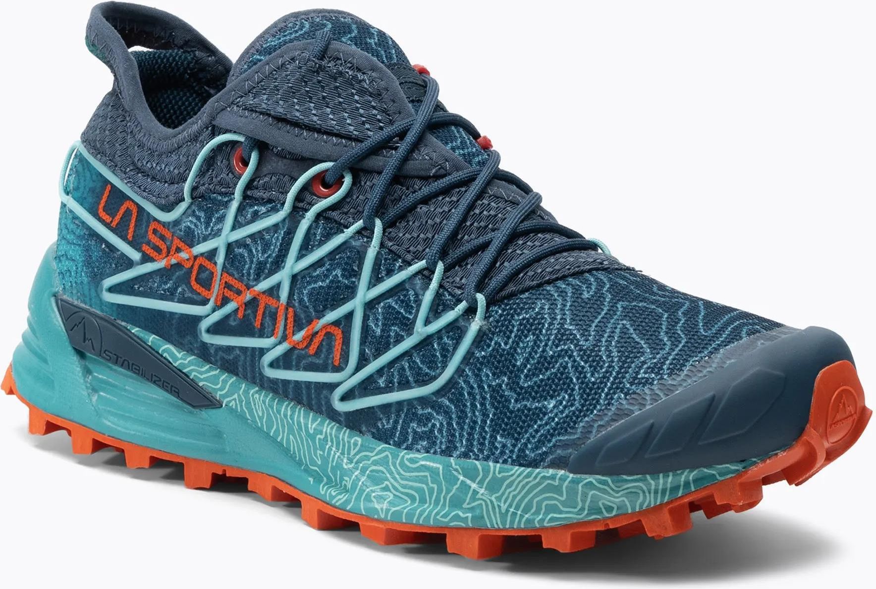 La Sportiva Buty trailowe damskie La Sportiva Mutant - storm blue/cherry tomato 38.5 Buty trailowe damskie La Sportiva Mutant - storm blue/cherry tomato to model stworzony z myślą o miłośniczkach długich i średnich dystansów. Ten stabilny, wszechstronny model zapewnia doskonałą przyczepność w wymagającym, miękkim terenie. Buty trailowe damskie La Sportiva Mutant - storm blue/cherry tomato to oddychający model, którego cholewkę wykonano z pojedynczej, odpornej na uszkodzenia siatki. Jej obecność pozwoliła na zwiększenie cyrkulacji powietrza, co znacząco podnosi komfort podczas aktywności. Zintegrowany system sznurowania z technologią FusionGate™ umożliwia odpowiednie dopasowanie i przyleganie do stopy. Technologia SpyralTongue™, czyli zintegrowany język otula dolną część kostki, dodatkowo ją stabilizując. Za odpowiednią przyczepność w zróżnicowanym terenie odpowiada podeszwa FriXion® White, co w połączeniu ze średnią amortyzacją dba o komfort pokonywanych kilometrów. Ultra przyczepna podeszwa świetnie sprawdzi się w miękkim, błotnistym terenie. Wysokość amortyzacji w okolicach pięty wynosi 26 mm, przy palcach natomiast 16 mm. Za wygodę wewnątrz modelu odpowiada wkładka Ortholite® Hybrid Mountain Running® Ergonomic 4 mm. Buty La Sportiva Mutant - storm blue/cherry tomato - najważniejsze cechy Buty na dłuższe i średnie dystanse; Stabilny model o świetnej przyczepności w miękkim, błotnistym terenie; Cholewka z wytrzymałej, oddychającej siatki; System sznurowania FusionGate™; Zintegrowany język SpyralTongue™; Podeszwa FriXion® White; Średnia amortyzacja; Wysokość przy pięcie 26 mm; Wysokość przy palcach: 16 mm; Drop 10 mm; Wewnętrzna wkładka Ortholite® Hybrid Mountain Running® Ergonomic 4 mm.