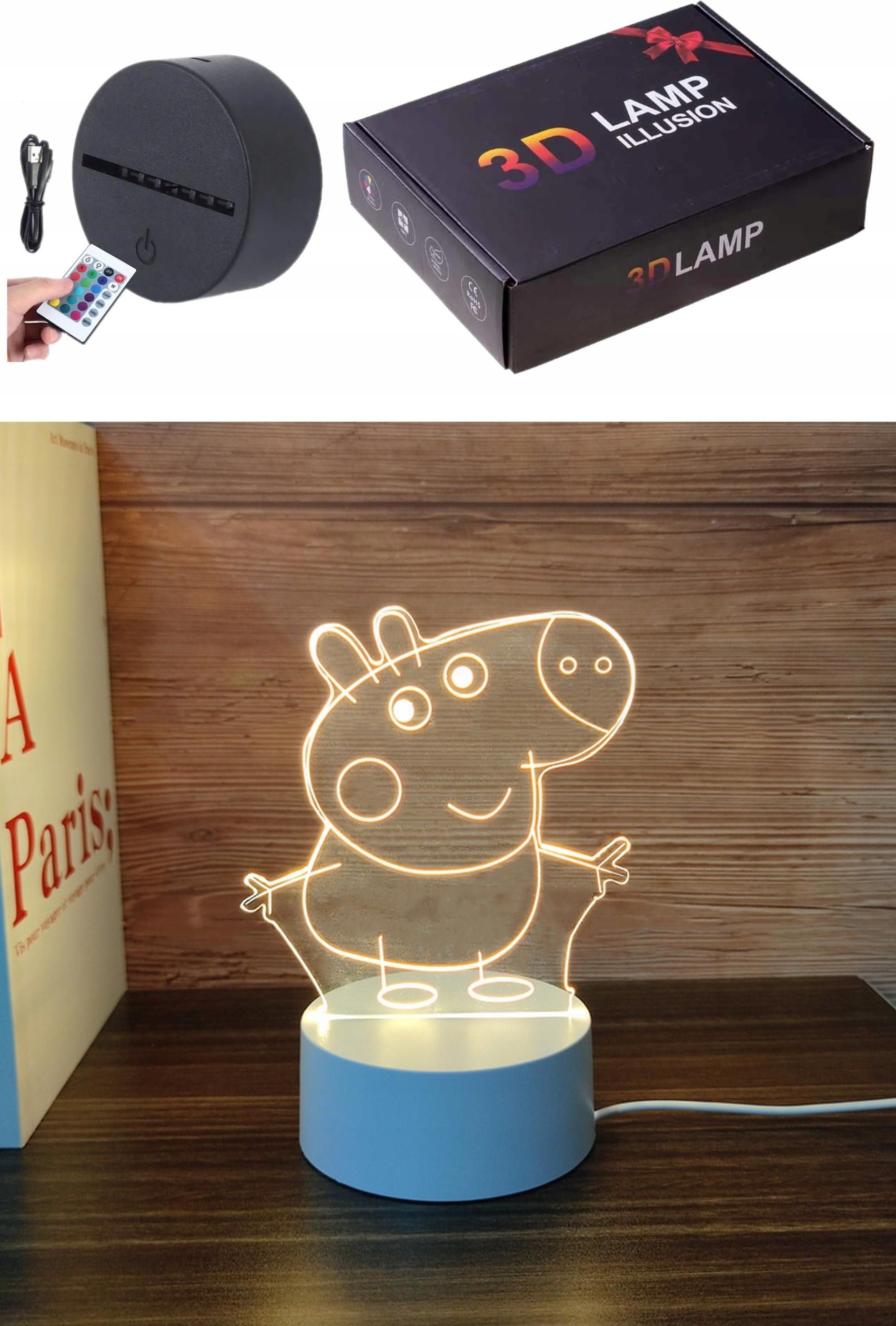 Lampka Nocna Neon Akryl Dekoracja 3D Led Hologram Rgb Świnka Peppa + Pilot Dobczyce