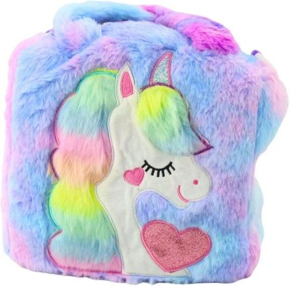 PLUSZOWA TOREBKA Z JEDNOROŻCEM KOLOROWA Urocza torebka z motywem jednorożca to idealny dodatek dla każdej małej miłośniczki bajkowych akcesoriów.