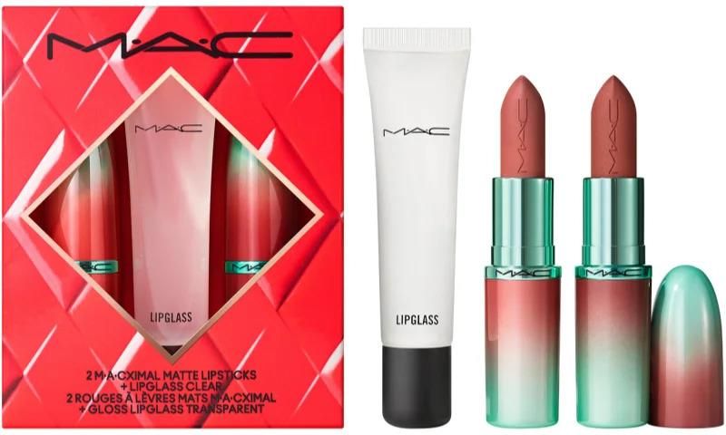 MAC Cosmetics Holiday MACx To The Future, 1 szt., Zestawy kosmetyków dla kobiet, Wszystko dla perfekcyjnego makijażu w jednym opakowaniu. Zestaw kosmetyków MAC Cosmetics Holiday MACx To The Future zawiera nie jeden, ale kilka elementów upiększających, które pomogą stworzyć lub wzbogacić rutynowy makijaż. Paczka pełna kosmetyków do makijażu ucieszy Ciebie lub, jako prezent, zachwyci Twoich bliskich. Zawartość zestawu: MAC Cosmetics Lipglass Clear błyszczyk do ust 15 ml MAC Cosmetics MACximal Silky Matte Lipstick Velvet Teddy szminka matowa 3.5 g MAC Cosmetics MACximal Silky Matte Lipstick Whirl szminka matowa 3.5 g Właściwości: sprawi radość każdej kobiecie dla idealnego podkreślenia ust produkt idealny zarówno do dziennego Sposób użycia: Szminkę nanieś delikatnymi pociągnięciami na usta od środka w stronę kącików. Dla uzyskania jeszcze intensywniejszego efektu, aplikuj więcej warstw. Stosuj samodzielnie lub w połączeniu z ulubionym błyszczykiem do ust.