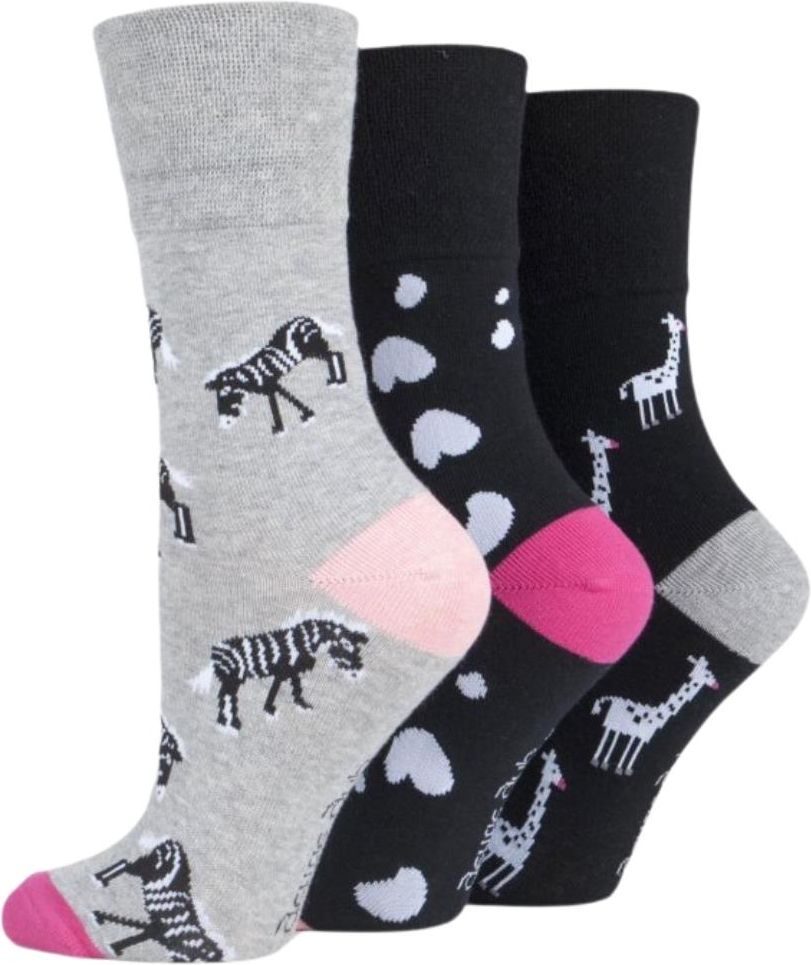 Maksymalny KOMFORT Skarpety Damskie 3-pary F102 dzikie zwierzęta Dobczyce