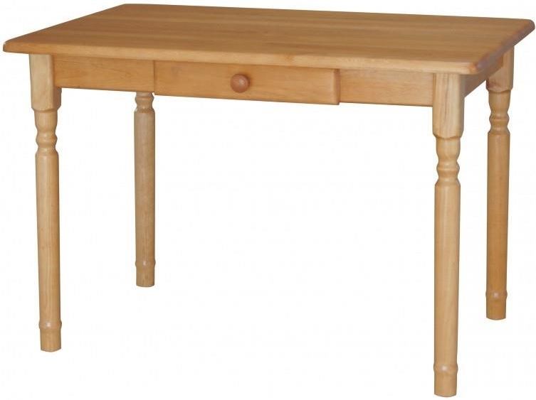 Stół sosnowy z szufladą i Toczonymi Nogami 70/180 OLCHA Stół zrobiony z litego drewna sosnowego, podwójnie lakierowany. Do lakierowania naszych wyrobów używamy lakierów posiadających atest Państwowego Zakładu Higieny. Możemy przygotować produkt surowy, gotowy do samodzielnego polakierowania. …