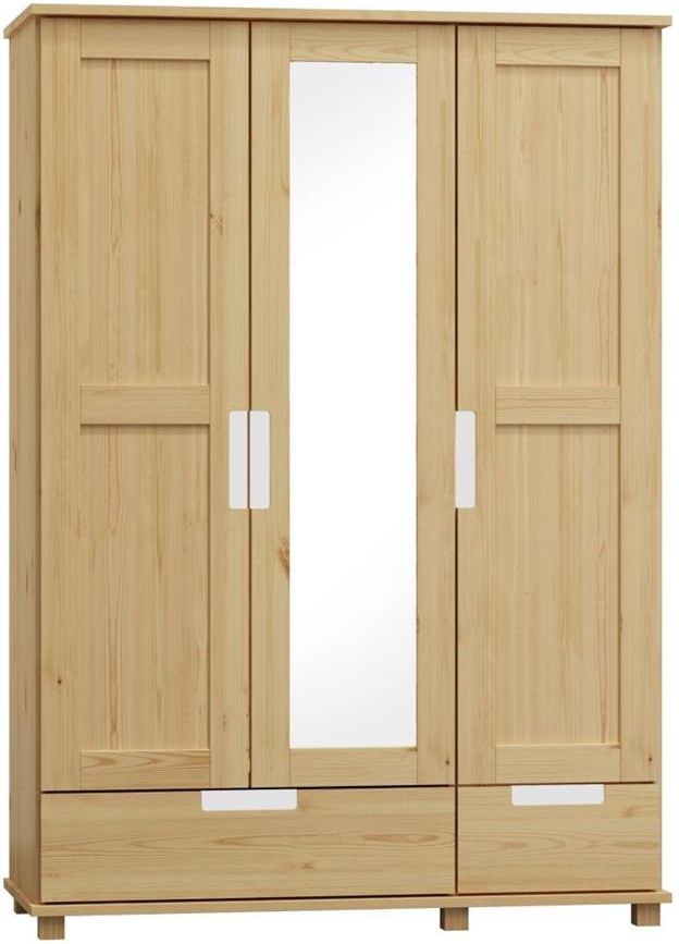 Szafa III-drzwiowa Rea C8 z szufladą, wieszakiem i półkami 150x190x60 Wykonana w całości z drewna sosnowego, plecy z płyty pilśniowej. Konstrukcja bardzo stabilna, klejona i skręcana. Zawiasy puszkowe. Lakierowana lakierem bezbarwnym metodą natryskową. Wewnątrz szafy jest podział na drążek i półki. …