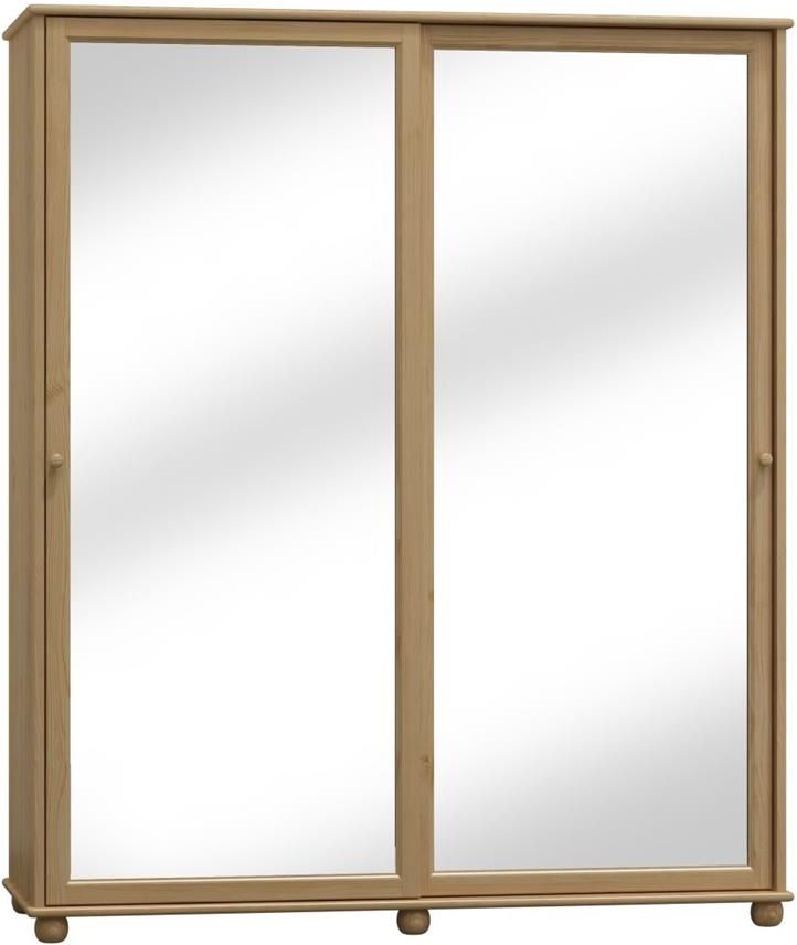 Szafa Przesuwna z lustrem c81 160. Wykonana w całości z drewna sosnowego, plecy z płyty pilśniowej. Drzwi przesuwne. Szafa jest lakierowana lakierem bezbarwnym metodą natryskową. Wewnątrz szafy wieszak. Lustro. Mebel wysyłany w paczce do samodzielnego montażu wraz z instrukcją oraz akcesoriami . Szafa nie posiada uchwytów, które są na zdjęciu. Wymiary szafy : Szerokość 160 cm wysokość 190 cm głębokość 60 cm