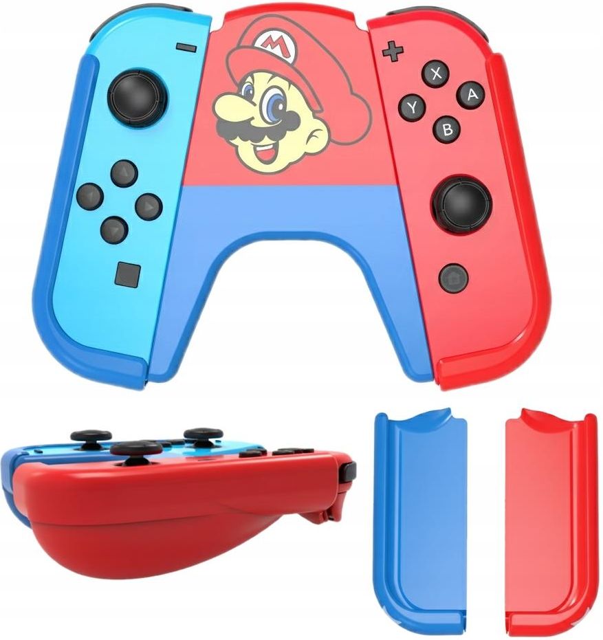 PLASTIKOWY UCHWYT PAD GRIP KONTROLER NA 2x JOY-CON DO NINTENDO SWITCH UCHWYT DO KONTROLERÓW NINTENDO SWITCH – KOMFORT I ERGONOMIA W KAŻDEJ ROZGRYWCE Uchwyt do kontrolerów Nintendo Switch to nowoczesne rozwiązanie dla każdego gracza, który oczekuje maksymalnego komfortu. Zapewnia stabilny chwyt i ergonomię, dzięki czemu nawet wielogodzinne sesje przed ekranem stają się przyjemniejsze Uchwyt został zaprojektowany z myślą o komforcie dłoni i nadgarstków. Wyprofilowana konstrukcja minimalizuje zmęczenie podczas długiej rozgrywki, a solidne tworzywo daje poczucie pewności i trwałości. Lekka, a jednocześnie solidna konstrukcja pozwala na precyzyjne sterowanie nawet w dynamicznych grach, co sprawia, że każda rozgrywka staje się przyjemniejsza i bardziej naturalna. Opis Dedykowane do: Joy-Con Nintendo Switch; Ilość: 1 zestaw Wzór: Mario; Kolor: Środkowy panel czerwono-niebieski z logo Mario | Lewy uchwyt Joy-con Niebieski, Prawy uchwyt Joy-con Czerwony Tworzywo: ABS Wykończenie antypoślizgowe dla pewnego chwyt; Ergonomiczny kształt zapewniający wygodny chwyt Stabilna i lekka konstrukcja dla precyzyjnego sterowania Zestaw zawiera 1x Niebieski uchwyt lewego Joy-Cona; 1x Czerwony Uchwyt Prawego Joy-Cona; 1x Środkowy panel; UWAGA JOY-CON WIDOCZNY NA ZDJĘCIU NIE JEST PRZEDMIOTEM SPRZEDAŻY!