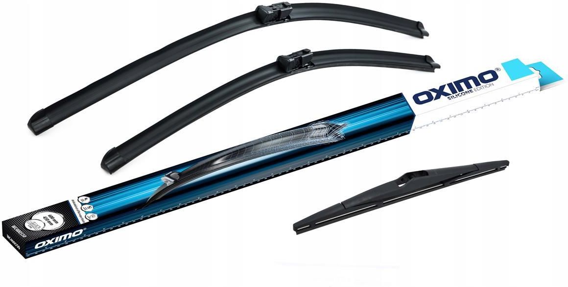 Komplet wycieraczek bezszkieletowych marki Oximo Długość: 600 + 450 mm Nr katalogowy: WC400550 Strona zabudowy: Przód Typ: Bezprzegubowe (płaskie) Seria: Silicone edition Pióra wycieraczki wykonane z naturalnego kauczuku z dodatkiem silikonu oraz warstwy PTFE (teflon) zapewnia skuteczne zbieranie …