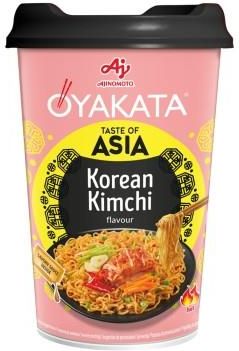 Oyakata Danie Koreańskie Kimchi (pikantne) kubek 97g Możliwość zakupu w opakowaniu zbiorczym: 8 sztuk. Danie instant z makaronem typu noodle, sosem płynnym i garniszem, o smaku fermentowanych warzyw kimchi. Informacje dla alergików:Pszenica, soja, mleko, sezam. Produkt może zawierać: skorupiaki, mięczaki, dwutlenek siarki i siarczyny, jaja, ryby, seler, gorczycę. Sposób przygotowania/ użycia:Sposób przyrządzania: Po zalaniu wrzątkiem, odczekaniu 3 min. i zamieszaniu stanowi gotową do spożycia potrawę. Składniki:Produkt składa się z makaronu typu noodle, sosu w płynie oraz suszonych warzyw (garnisz). Składniki w kolejności malejącej, w tym substancje dodatkowe (funkcje technologiczne): Składniki: makaron instant typu noodle 80%* [mąka pszenna, olej palmowy, skrobia modyfikowana, sól, substancje spulchniające: węglany sodu, węglany potasu], sos w płynie 18%* [olej słonecznikowy, sos sojowy (woda, soja, pszenica, sól), cukier, sos rybny (ekstrakt z anchois (ryba), sól, cukier), woda, ocet ryżowy, aromaty, wzmacniacze smaku: E621, E635; melasa trzcinowa, płynny cukier inwertowany, sól, cukier karmelizowany, ocet winny jabłkowy w proszku ((ocet winny jabłkowy, maltodekstryna), czosnek w proszku, regulator kwasowości: kwas cytrynowy; cebula w proszku, chili w proszku, ekstrakt drożdżowy, sok z cebuli w proszku, ekstrakt z chili], kapusta biała suszona, płatki chili. *W całym produkcie. Wartość odżywcz 100 g gotowego produktu: Wartość energetyczna: 944 kJ/ 225 kcal Tłuszcz 11g W tym kwasy tłuszczowe nasycone 5,1g Węglowodany 27g w tym cukry 2,1g Błonnik 1,0g Białko 4,1g Sól 1,5g Sposób przechowywania: Warunki przechowywania: Przechowywać w suchym, chłodnym i zacienionym miejscu. Kraj pochodzenia: Polska Dane producenta/Kto wprowadził produkt do obiegu: AJINOMOTO POLAND Sp. z o.o. ul. Sobieskiego 6, Kańkowo 07-320 Małkinia Górna