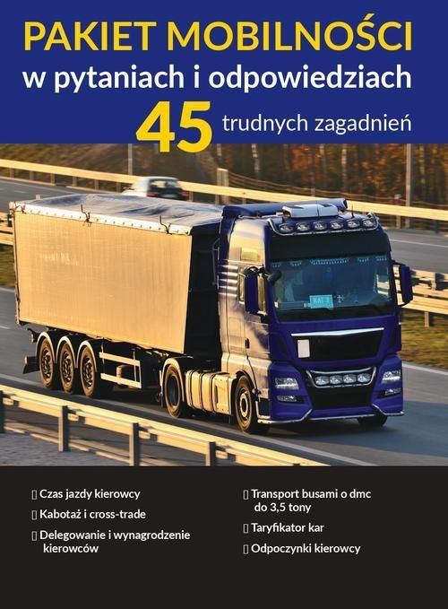 W 2022 roku pojawiło się wiele zmian, które miały ogromny wpływ na prace kierowców. Brak możliwości wypłacania kierowcom pracującym na trasach międzynarodowych diet i ryczałtów noclegowych z tytułu podróży służbowych. Obowiązek powrotu ciężarówki co 8 tygodni do kraju. Zmiany dotyczące ewidencji czasu prawy kierowców. To tylko niektóre z nich. Dzięki publikacji „Pakiet mobilności w pytaniach i odpowiedziach. 45 trudnych zagadnień" dowiesz się, jak stosować tzw. pakiet mobilności zgodnie z przepisami. Spis treści: UOZ 71