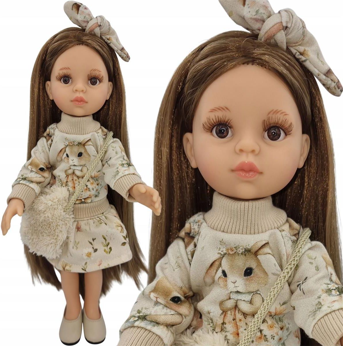Piękne ubranko dla lalki Paola Reina 32 cmFirma Paola Reina specjalizuje się w produkcji lalek o wyglądzie i w dotyku przypominającym prawdziwe dzieci. Teraz również do nabycia przepiękne ubranka dla tych laleczek - wyprodukowane na zamówienie.Ubranko doskonale pasuje na laleczki w rozmiarze 32 cm.Zestaw zawiera : bluzę dresową z tyłu zapinaną na rzep, spódniczkę, opaskę, torebkę.Zestaw nie zawiera lalki i butów!Ubranko pakowane w woreczek foliowy.