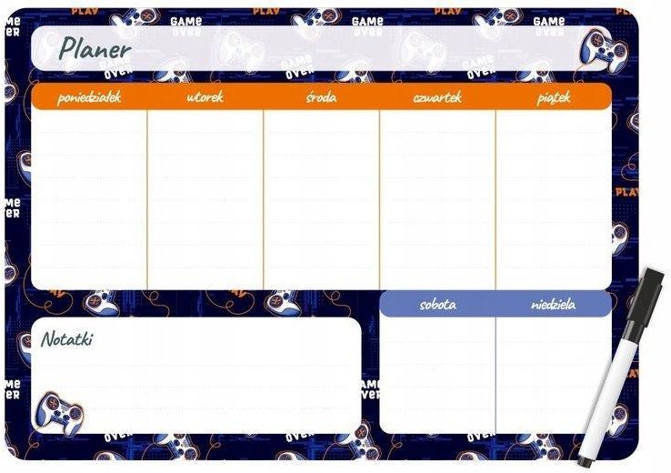 Planer Suchościeralny Magnetyczny 25 X 35Cm Biurfol Z Nadrukiem Gamepad Układ Tygodniowy Poziomy Pm 02 33 Dobczyce