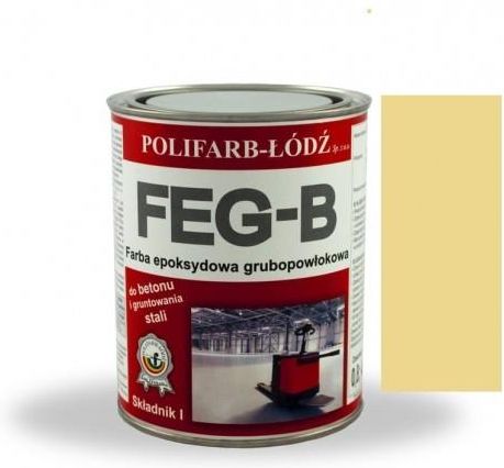 FEG-B - farba epoksydowa do betonu 5L Beżowy Jasny Wyrób epoksydowy tiksotropowy, dwuskładnikowy do malowania podłoży betonowych (w tym posadzki w garażach, magazynach, halach fabrycznych itp.) i tynków oraz do wykonywania grubopowłokowych zabezpieczeń antykorozyjnych konstrukcji stalowych, w tym ocynkowanych. Może być nakładana w warstwach o grubości do 250 µm. Farba FEG-B może być stosowana samodzielnie lub w zestawie z wyrobami nawierzchniowymi poliwinylowymi, akrylowo - poliwinylowymi, poliuretanowymi, epoksydowymi. POWŁOKA FARBY POSIADA WŁAŚCIWOŚCI PRZECIWPOŚLIZGOWE.Spełnia wymagania klasy R12 normy DIN 51130 (dla obiektów przemysłowych) oraz wymagania normy DIN V 18032-2 (dla obiektów sportowych). Powłoka jest:- gładka,- twarda,- elastyczna,- dobrze przyczepna,- kryjąca,- szybko wysychająca,- odporna na ścieranie,- odporna na chemikalia (rozpuszczalniki, paliwa płynne, oleje, detergenty, wodę) oraz na inne czynniki korozyjne,- odporna na temp. od -20ºC do +130ºC.