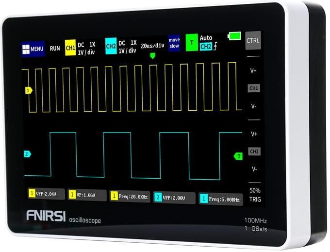 GENERATOR Oscyloskop cyfrowy z tabletem DualChannel to niezbędne narzędzie dla profesjonalistów i hobbystów. Zapewnia precyzyjne i dokładne pomiary. Idealny do diagnostyki samochodowej, testów elektrycznych i prac laboratoryjnych, ten oscyloskop może być używany do łatwego przechwytywania i analizy przebiegów. Oscyloskop cyfrowy dwukanałowy 1013D Kluczowe funkcje Dwukanałowa praca: Umożliwia jednoczesne monitorowanie i porównywanie dwóch sygnałów. Wysoka częstotliwość próbkowania: Częstotliwość próbkowania w czasie rzeczywistym: Do 1GSa/s dla dokładnego przechwytywania przebiegów. Szerokość pasma analogowego: 100 MHz, idealna do różnych zastosowań o wysokiej częstotliwości. Ekran dotykowy: 7-calowy ekran dotykowy TFT do intuicyjnego sterowania i ustawiania nawigacji. Rozdzielczość: 800x480 pikseli, zapewniająca wyraźne, szczegółowe wyświetlanie przebiegów. Wiele Trybów Wyzwalania: Tryby Auto, Normal i Single Trigger dla elastycznego przechwytywania sygnału. Funkcje automatycznego pomiaru: Zawiera automatyczne pomiary napięcia, częstotliwości i cyklu pracy. Wbudowana bateria 6000mAh: Zapewnia długi czas użytkowania, ładowana przez USB-C. Liczba Kanałów: 2 Szerokość pasma: 100MHz Częstotliwość próbkowania: 1GSa / s Głębokość przechowywania: 240Kb Rozstaw czasowy: 50S / div~10nS / div Czułość pionowa: 50 mV / div~500 V / div Impedancja wejściowa: 1M ohm Tryby wyzwalania: Auto / Normalny / Pojedynczy Rodzaje wyzwalaczy: Rising Edge / Falling edge Sprzężenie: DC / AC Najwyższe napięcie testowe: 1X : 40V / 10X : 400V Kursor: Pozycja XY / Wyzwalacz Y Menedżer przebiegów: Wsparcie (1000 fot. +1000 przebiegu) Precyzja częstotliwości: ±0.01% Eksport USB: Wsparcie Zasilanie: bateria litowa 6000 mAh MULTIMETR OSCYLOSKOPOWY Zdolność dwóch kanałów: Ten dwukanałowy oscyloskop może wyświetlać i analizować różne sygnały, co jest szczególnie przydatne do porównywania przebiegów Przenośna konstrukcja: ten oscyloskop został zaprojektowany tak, aby był lekki, co ułatwia obsługę oraz wygodne przechowywanie i transport Akumulator o dużej pojemności: Wyposażony w akumulator o dużej pojemności, ten oscyloskop oferuje wydłużony czas użytkowania bez konieczności częstego ładowania Próbkowanie z dużą prędkością: Ten oscyloskop posiada szybkie próbkowanie, dokładnie rejestrujące przebieg w celu precyzyjnej i wydajnej analizy Szeroki zakres zastosowań: ten oscyloskop tabletowy jest szeroko stosowany w różnych dziedzinach, w tym w elektronice, telekomunikacji, motoryzacji i edukacji Pełnoekranowy o wysokiej rozdzielczości 7-calowy kolorowy wyświetlacz TFT- LCD full Capacitive Touch Screen o rozdzielczości 800 * 480. Lissajous Figures Display & Funkcja analizy FFT Funkcja wyświetlania liczb Lissajous może być używana do określenia amplitudy, częstotliwości i kontrastu fazowego 2 grup sygnałów; Funkcja analizy FFT może analizować składowe harmoniczne sygnału. MULTIMETR OSCYLOSKOPOWY GENERATOR OSCYLOSKOP CYFROWY OSCYLOSKOP Z EKRANEM DOTYKOWYM PRZENOŚNY OSCYLOSKOP OSCYLOSKOP DO TESTÓW ELEKTRYCZNYCH OSCYLOSKOP TABLETKOWY PORĘCZNY OSCYLOSKOP OSCYLOSKOP WIELOFUNKCYJNY OSCYLOSKOP KARETOWY OSCYLOSKOP CYFROWY ✅Szerokość pasma: 100MHz ✅Częstotliwość próbkowania: 1GSa/s ✅Pojemność baterii: 6000mAh ✅Kolor: czarny ✅Materiał: tworzywo sztuczne ✅Rozmiar: 18.40X12.40X5.00cm/7.23X4.87X1.97in Kanały : 2 (dwukanałowy) Wyświetlacz : 7-calowy ekran dotykowy TFT (rozdzielczość 800x480) Czułość pionowa : 10mV/div do 10V/div Podstawa czasu poziomego : 50ns/div do 1s/div Akumulator : 6000 mAh (ładowany przez USB-C) Zastosowania Testowanie w terenie: Idealny do monitorowania sygnału na miejscu i rozwiązywania problemów. Debugowanie obwodów: Przydatne do identyfikacji problemów w układach elektronicznych. Zastosowania edukacyjne: Nadaje się do szkolenia elektroniki i eksperymentów laboratoryjnych. Projekty hobbystyczne: Idealne do elektroniki DIY i projektów rozwojowych na małą skalę. Zawartość opakowania 1 * oscyloskop dwukanałowy FNIRSI 1013D 2 * kable sondy (do testowania dwukanałowego) 1 * zasilacz 5V2A 1 * kabel ładujący USB-C 1 * instrukcja obsługi