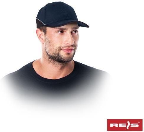 CZFMN Czapka z daszkiem. 65% poliester, 35% bawełna. Gramatura 270 g/m2. Usztywniany daszek i przód czapki. Zapinana na rzep. 6-panelowa. Wykończona odblaskowym paskiem, co zwiększa widoczność użytkownika. Szeroka gama kolorów. Marka: REIS Produkt polecany dla branż: Przemysł spożywczy w tym obsługa restauracji oraz służby zdrowia i lecznictwa