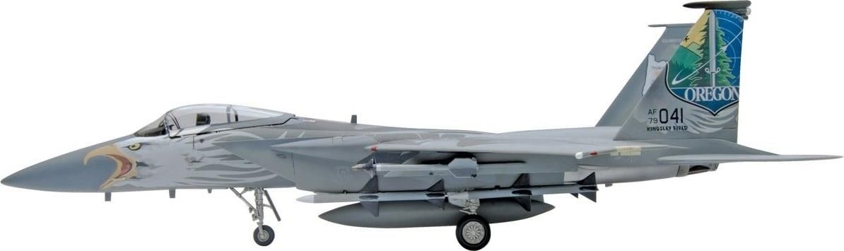 Skala 1:48 Wraz z rozszerzeniem się wojny w Wietnamie potrzeby marynarki wojennej i USAF nie mogły zostać zaspokojone przez projekt jednego samolotu. USAF podkreślił dodatkowe osiągi i zwrotność dla swoich potrzeb w myśliwcu wyższym od powietrza. Po wielu propozycjach wybrany projekt, F-15C Eagle, został oddany do użytku w 1978 roku. Ma wyjątkowy rekord 100 zwycięstw i brak strat w walce powietrznej. Specjalne naklejki dla Oregon ANG, 173. skrzydło myśliwskie, 75. rocznica Pociski Sidewinder i Sparrow, a także czołgi zrzutowe dalekiego zasięgu Opcjonalny otwarty stożek do wyświetlania wyposażenia radarowego Jasnoszary i wyraźnie ukształtowany