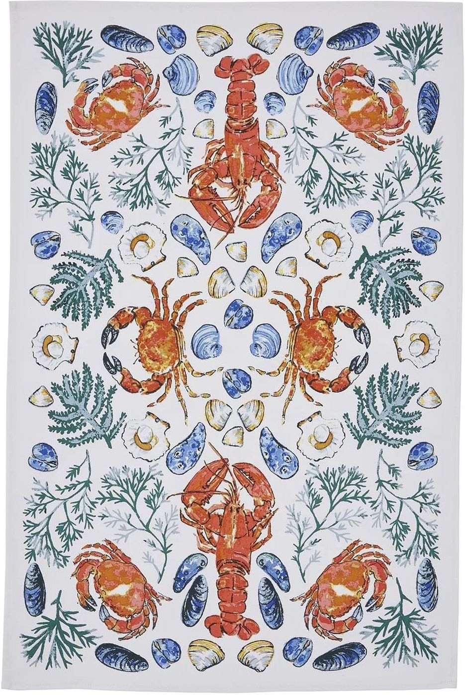 Ścierka kuchenna 48x74 cm Shellfish 022SHFS Bawełniana ściereczka kuchenna o ciekawy projekcie, niczym malowane akwarelą homary i kraby, małże ukrywające się wśród wirujących wodorostów. Grafika została stworzona jako współczesne lustrzane odbicie, kalejdoskop wzorów dla nowoczesnych kuchni i …