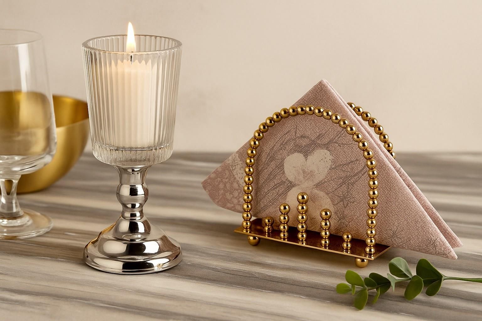 Stylowy stojak na serwetki złoty to nie tylko praktyczny element wyposażenia stołu, ale również efektowna dekoracja. Wykonany z metalu o połyskującym, złotym wykończeniu, przyciąga wzrok i dodaje elegancji każdej aranżacji. Ozdobny design z kulistymi zdobieniami sprawia, że uchwyt na serwetki …