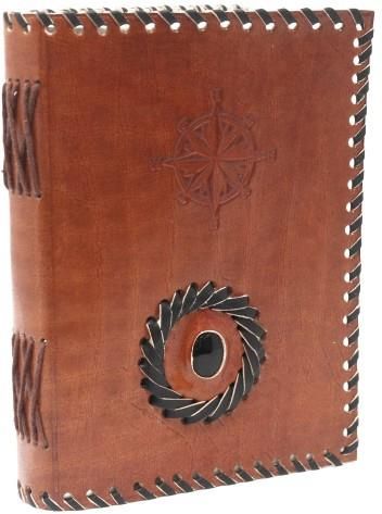 Ręcznie wykonany Notatnik Podróżnika z okładką wykonaną ze skóry z kompasem i czarnym onyksem. Piękne zdobienia na okładkach dodają uroku oraz sprawiają, że Notatnik ma swój niepowtarzalny styl. Produkt może być użyty jako notatnik, pamiętnik lub szkicownik z wyprawy lub podróży. Pochodzenie Indie Wymiary 17.5x12.5x2 (cm)