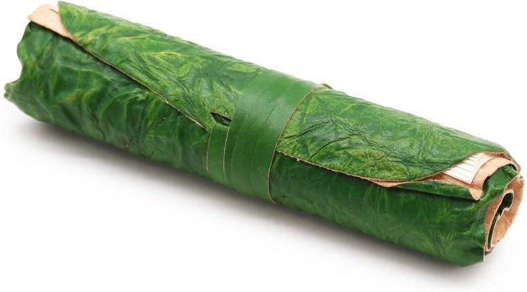 Notatnik Podróżnik skórzany zwijany zielony Zwijany Skórzany Notatnik Podróżniczy w wyrafinowanej czerni płynnie łączy klasyczny design z nowoczesną praktycznością. Notatnik ma okładkę z prawdziwej skóry, która emanuje wyrafinowanym luksusem. Głęboki czarny kolor dodaje mu elegancji. Dzięki wymiarom 21 x 15 cm i 96 stronom oferuje wystarczająco dużo przestrzeni dla twórczej ekspresji. Charakterystyczny wzór okładki wywołuje poczucie ponadczasowego uroku, jednocześnie zaspokajając nowoczesną wrażliwość. To coś więcej niż tylko notatnik — to wszechstronne akcesorium, które dostosowuje się do Twoich potrzeb. Możliwość zrolowania i skrępowania skórzanym paskiem zapewnia ochronę cennych treści podczas podróży. Pochodzenie: Indie