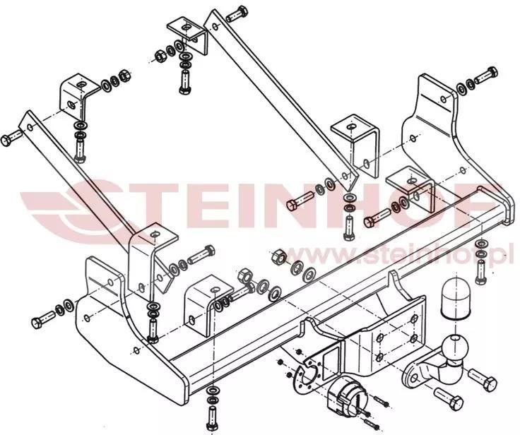 Hak Flanszowy STEINHOF R-062 Dane techniczne Homologacja: E20 Rodzaj kuli: Flanszowa Parametr "D" [kN]: 15,9 Max. uciąg [kg]: 3000 Max. nacisk pionowy [kg]: 120 Hak Flanszowy STEINHOF R-062 pasuje do poniższych aut: Kliknij tutaj aby rozwinąć listę(kliknij markę aby sprawdzić kompatybilne modele) OPEL OPEL Movano B Furgon, Minibus 3,5T (podwójne koła, ze stopniem, tylny napęd) [ 2010-2022 ] Wymaga zdjęcia / podcięcia zderzaka: NIE / NIE RENAULT RENAULT Master Furgon, Minibus 3,5T (podwójne koła, ze stopniem, tylny napęd) [ 2010-2023 ] Wymaga zdjęcia / podcięcia zderzaka: NIE / NIE Hak flanszowy STEINHOF to rozwiązanie stworzone z myślą o samochodach dostawczych i pojazdach użytkowych, które wymagają maksymalnej wytrzymałości i niezawodności. Ten typ haka jest wybierany przez kierowców, którzy cenią sobie solidność, prostotę i trwałość konstrukcji. Dzięki brakowi mechanizmów ruchomych hak flanszowy jest całkowicie bezawaryjny i nie wymaga konserwacji. Jego montaż odbywa się w dedykowanych punktach mocowania, co zapewnia idealne dopasowanie do konkretnego modelu auta – bez potrzeby spawania, cięcia czy przeróbek w podwoziu pojazdu. Hak można wykorzystywać do holowania przyczep, montażu bagażników rowerowych lub innych akcesoriów transportowych. W razie potrzeby demontaż kuli jest bardzo prosty – wystarczy odkręcić dwie śruby. W praktyce jednak większość użytkowników pozostawia hak zamontowany na stałe, ze względu na jego trwałość i funkcjonalność. Każdy hak holowniczy STEINHOF produkowany jest z wysokogatunkowej stali i pokrywany trwałą powłoką proszkową, która skutecznie zabezpiecza przed korozją i czynnikami atmosferycznymi. To gwarancja wysokiej jakości, bezpieczeństwa oraz długiej żywotności produktu – przy zachowaniu konkurencyjnej ceny. Produkty marki STEINHOF objęte są 2-letnią gwarancją producenta, co potwierdza ich niezawodność i precyzję wykonania. Co zawiera zestaw Belkę haka idealnie dopasowaną do Twojego auta Kulę flanszową Zestaw montażowy (wsporniki, śruby, podkładki, etc.) Osłonkę kuli (kapturek) Homologację - tabliczka znamionowa na belce - wymagana do rejestracji! Podstawka pod gniazdo elektryczne Instrukcja montażu Hak standardowo nie zawiera w zestawie wiązki elektrycznej. Odpowiednio dopasowane zestawy elektryczne znajdziesz poniżej. Producent lub osoba odpowiedzialna GRUPA STEINHOF SPÓŁKA Z OGRANICZONĄ ODPOWIEDZIALNOŚCIĄ Przemysłowa 27A 33-100 Tarnów sekretariat@steinhof.plOstrzeżenia dotyczące bezpieczeństwa: Montaż wyłącznie przez wykwalifikowany warsztat. Nie przekraczać maksymalnego uciągu i nacisku na kulę określonych przez producenta. Przed każdą jazdą sprawdzić mocowanie i stan haka. Nie używać haka z oznakami uszkodzenia lub luzami. Nie modyfikować elementów haka ani mocowań. Regularnie kontrolować momenty dokręcenia i stan połączeń. Używać wyłącznie do holowania pojazdów zgodnych z homologacją.