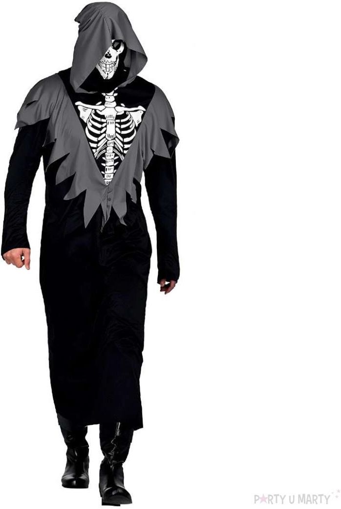 Przygotowujesz się do imprezy halloweenowej? A może kompletujesz przebranie na niebanalną sesję zdjęciową? Kostium mrocznego żniwiarza na pewno sprawdzi się doskonale! W skład zestawu wchodzi czarna szara z szarym kapturem. Na szacie widać kości, dzięki czemu ta prezentuje się iście …