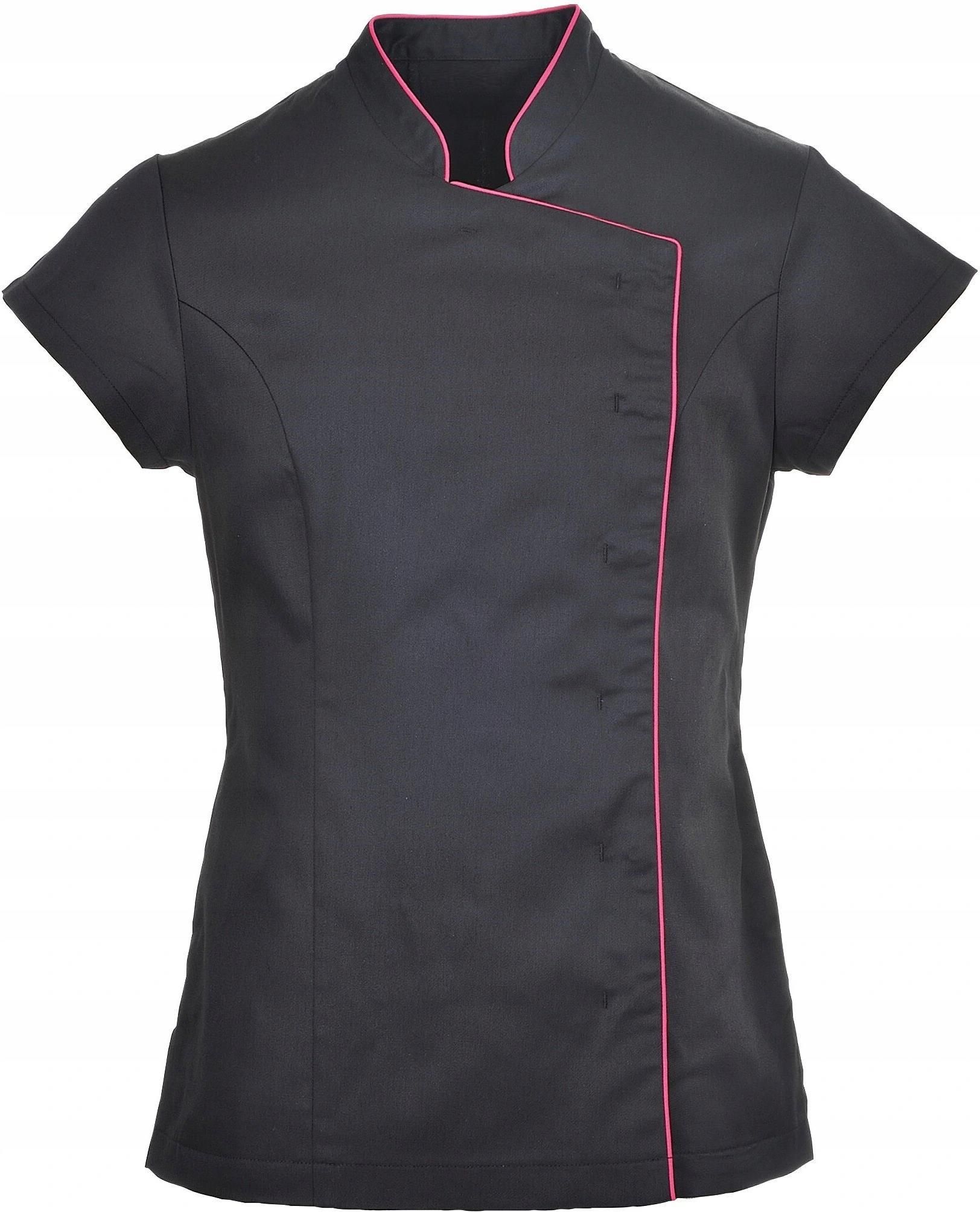 Tunika robocza z krótkim rękawem Klasyczna tunika doskonała do wielu zastosowań. Ozdobiona kontrastową lamówką. Stosowana wszędzie tam, gdzie wymagają tego zasady higieny lub możliwe jest zabrudzenie, czy też zniszczenie odzieży wierzchniej. Szeroko wykorzystywana w szpitalach, laboratoriach, zakładach kosmetycznych i fryzjerskich czy na halach produkcyjnych. Tunika posiada zakryte zapięcie na napy oraz praktyczne boczne kieszenie. Materiał posiada ocenę UPF 50+ co oznacza, że blokuje 98% promieni UV, które docierają do odzieży. rozmiary Plus Size zakryte zapięcie na napy kontrastowa lamówka zaszewki podkreślające krój kieszenie boczne materiał posiada ocenę UPF 50+ co oznacza, że blokuje 98% promieni UV, które docierają do odzieży materiał: Kingsmill (65% poliester, 35% bawełna) grubość materiału: 210g/m2