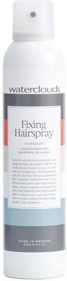 Waterclouds Fixing Hair Spray, 250 ml, Lakiery do włosów dla kobiet, Lakier do włosówWaterclouds Fixing Hair Spray utrwala końcową stylizację włosów oraz przedłuża trwałość fryzury. Sprawi, że fryzura pozostanie nienaruszona przez dłuższy czas, niezależnie od poziomu jej skomplikowania, zapewniając …